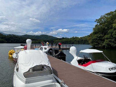 桟橋でのペダルボートや手漕ぎローボートへのご案内